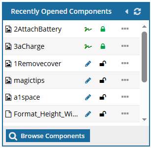 Recently Opened Components gives you quick access to edit a component you've recently opened or referenced.